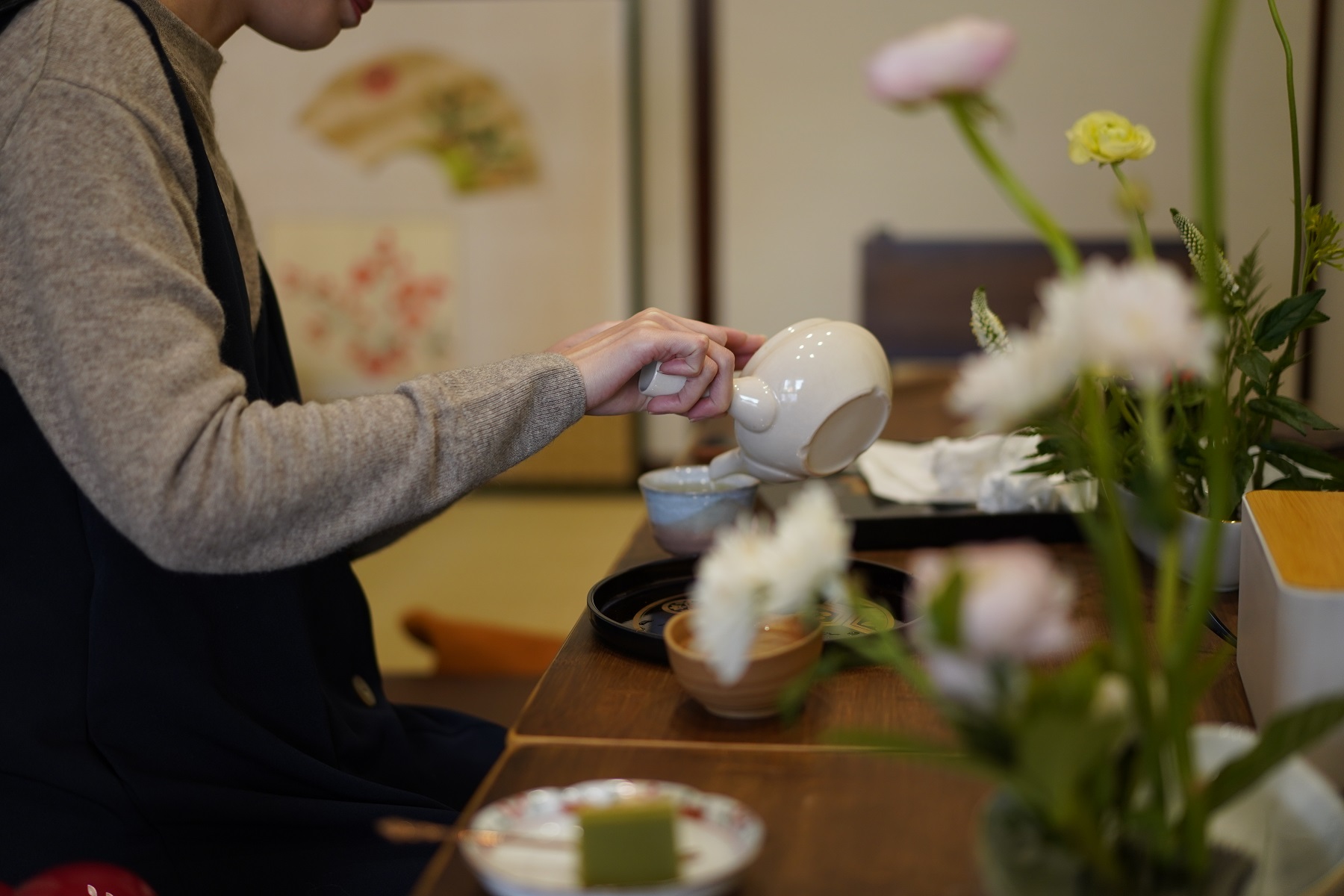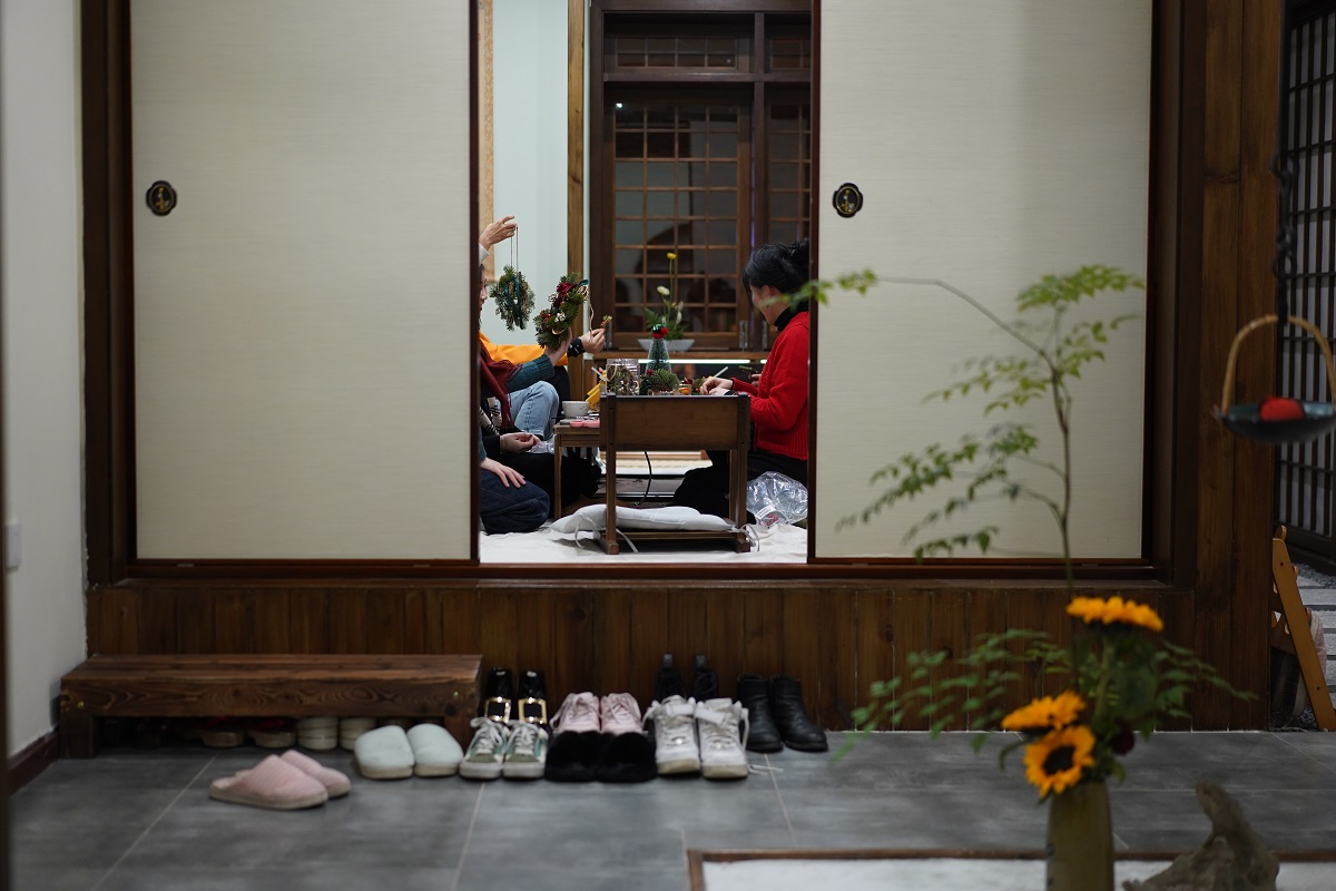 整体的装修风格由木质支撑,白为主调,一入室,便是清新淡雅,处处无静,也处处是静。是集和果子、正统和服、茶道、花道为一体的日式文化体验店。